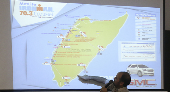 Durante la reunión, el representante del comité organizador, Luis Gálvez, destacó que Cozumel se ha posicionado a nivel mundial entre los cinco mejores destinos para la realización de triatlones importantes como el Ford Ironman y el MetLife Ironman 70.3, además que este año también se efectuará la Copa Mundial de Triatlón.