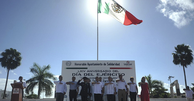 Playa del Carmen a 19 de febrero de 2014.- En el marco del LXIV Aniversario del día del Ejército Mexicano, el presidente municipal de Solidaridad Mauricio Góngora Escalante, reconoció a los miembros y autoridades castrenses por defender y salvaguardar la integridad de los habitantes del país, así como el apoyo de los militares en el municipio quienes han demostrado su compromiso con los solidarenses en el tema de seguridad.