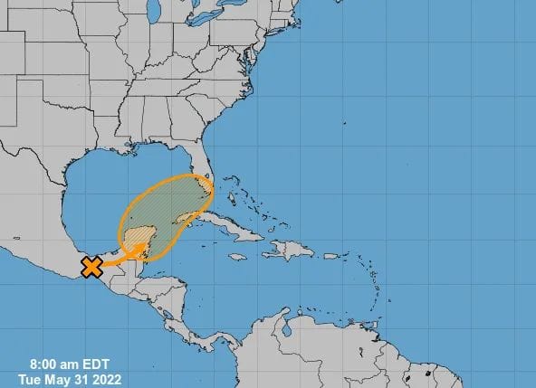 El sistema se desplaza hacia el Norte, extendiéndose desde la Península de Yucatán hasta los Cayos de la Florida, Estados Unidos.