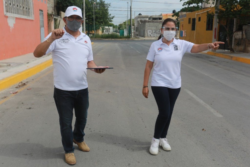 Para supervisar los trabajos, la Presidente Municipal, Mara Lezama, recorrió la Supemanzana 227 donde se realizan obras de pavimentación, guarniciones y banquetas, así como la tercera etapa de la red de drenaje que se llevará a cabo durante los próximos días.
